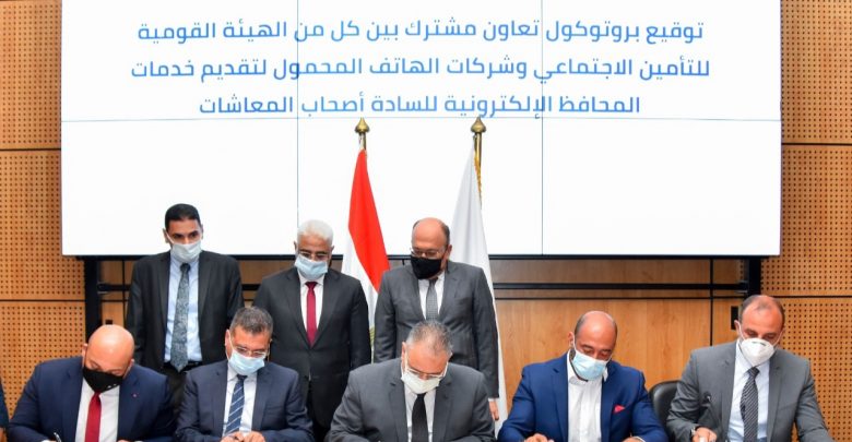 وتم توقيع الاتفاقية بحضور ممثلي شركات المحمول العاملة بالسوق المصري وذلك بمقر الجهاز القومي لتنظيم الاتصالات بالقرية الذكية بهدف إتاحة وتيسير صرف المعاشات لمستحقيها من خلال محافظ الهاتف المحمول.