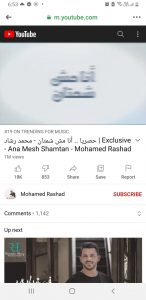 نجاح كبير حققه المطرب محمد رشاد بأغنيته أنا مش شمتان فبعد طرح الأغنية كانت من الفيديوهات الرائجة “ترند” اليوتيوب وبعد أيام قليلة وصلت مشاهدات الكليب لأكثر من مليون مشاهدة في حين اقتربت من ٢ مليون مشاهدة على التيك توك