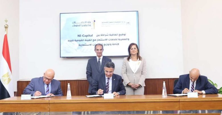 شهدت الدكتورة/ هالة السعيد وزيرة التخطيط والتنمية الاقتصادية ورئيس مجلس إدارة بنك الاستثمار القومي، والدكتور/ عمرو طلعت وزير الاتصالات وتكنولوجيا المعلومات وقائع توقيع الشركة المصرية لخدمات الاستثمار وترويج وتغطية الاكتتاب على الانضمام إلى اتفاقية تقديم الخدمات الموقعة سلفًا بين شركة “إن آي كابيتال” القابضة للاستثمارات المالية والهيئة القومية للبريد وذلك في حفل توقيع خاص بمقر وزارة التخطيط بحضور رؤساء الشركات والهيئات المعنية.
