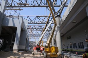 كما بلغت نسبة تتفيذ الأعمال الكهروميكانيكية للمشروع ٥٧ ٪ حيث يجرى تركيب أعمدة الكاتنري التي تغذي القطار بالكهرباء.