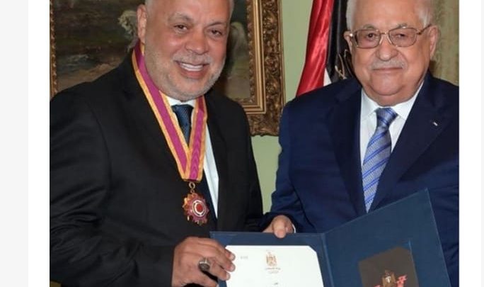 اشرف زكى يحصل على وسام الثقافه والعلوم والفنون من دولة فلسطين