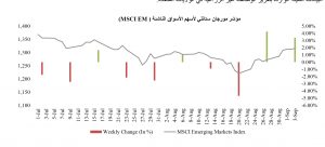 صعد مؤشر مورجان ستانلي للأسواق الناشئة MSCI EM بنسبة 3.40%، لكن الارتفاع كان أقل من الأسبوع السابق. وجاءت غالبية المكاسب الأسبوعية في الوقت الذي أدت فيه التقارير المتعلقة بالمشاريع العملاقة القادمة بمجال الطاقة المتجددة في الصين إلى ارتفاع حاد في بعض الأسهم الصينية في قطاع المعدات المتجددة والطاقة. علاوة على ذلك، سجل مؤشر MSCI المزيد من المكاسب خلال نهاية الأسبوع على خلفية بيانات التوظيف المخيبة للآمال بالولايات المتحدة، والتي أشارت إلى أن الاحتياطي الفيدرالي قد يؤخر سحب دعمه للاقتصاد الأمريكي.