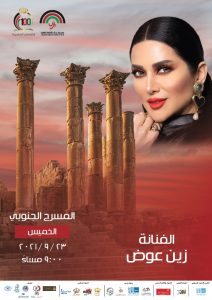 تواصل “فراشة الغناء الأردني” الفنانة زين عوض، تحضراتها للإطلالة على جمهور “مهرجان جرش للثقافة والفنون” في دورته الخامسة والثلاثين بحفل يجمعها مع المطربة اللبنانية نجوى كرم مساء الخميس المقبل 23/9/2021، على خشبة المسرح الجنوبي في المدينة الأثرية العتيقة في جرش.