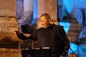 الفنان منذر رياحنه قدم الحفل بالقول ” انتو رح تقدمو ابو وديع رح نحكي كلنا سوا … شكرا لوجودكم وهتف الرياحنه مع الجمهور ابو وديع ابو وديع .. وقال اترك تقديم ابو وديع لكم انتم جمهوره ومحبينه