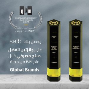 و قد كان بنك saib قد حصل العام الماضي على جائزة «البنك الأسرع نموًا في مصر لعام 2020» من قبل مجلة جلوبال بيزنس أوت لوك العالميةGlobal Business outlook ، التي تعد واحدة من أهم الكيانات المعروفة على مستوى العالم في مجتمع الأعمال والعمل المصرفي .