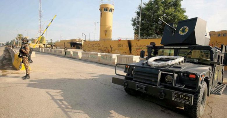 وقال مصدر أمني لـ”فرانس برس”، إن أحد “الصاروخين أسقط قرب السفارة الأميركية، فيما سقط الآخر قرب ساحة الاحتفالات الواقعة على بعد نحو 500 متر من السفارة”، في الهجوم الذي لم تتبنه أي جهة بعد.