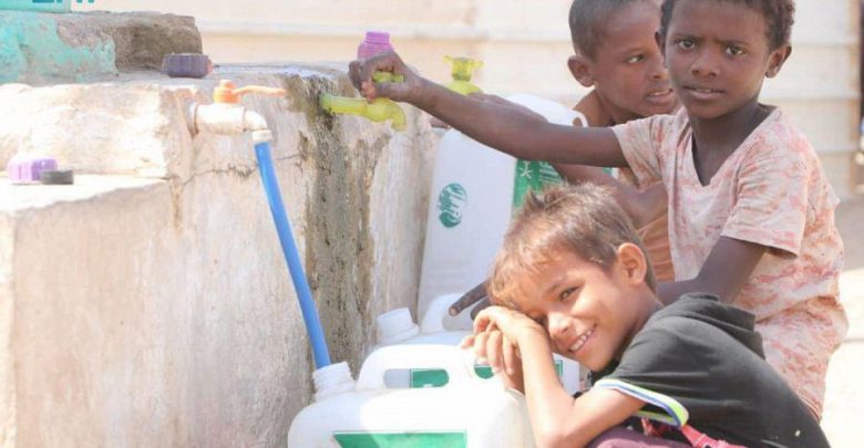 مركز الملك سلمان للإغاثة يضخ أكثر من نصف مليون لتر من المياه لمخيمات النازحين في اليمن