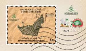 أطلق الشيخ نهيان مبارك آل نهيان، وزير التسامح والتعايش، رئيس مجلس أمناء جائزة خليفة الدولية لنخيل التمر والابتكار الزراعي، طابع بريد بعنوان (الإمارات.. أرض التسامح والتعايش) وذلك خلال حفل تكريم الفائزين بالجائزة بدورتها الرابعة عشرة 14 مارس 2022 ويأتي إصدار هذا الطابع بالتعاون بين الأمانة العامة للجائزة ومجموعة بريد الامارات، تعزيزاً لجهودهما الرامية لدعم المبادرات الوطنية لما فيها خدمة وتنمية دولة الإمارات العربية المتحدة.