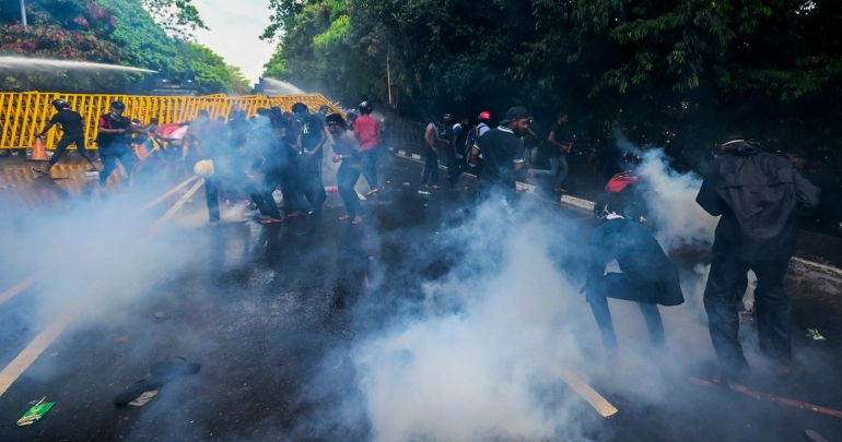ومنذ أمس الخميس، يرابط آلاف الطلاب على الطريق المؤدي إلى المجلس التشريعي الواقع في جزيرة اصطناعية على بحيرة في العاصمة كولومبو.