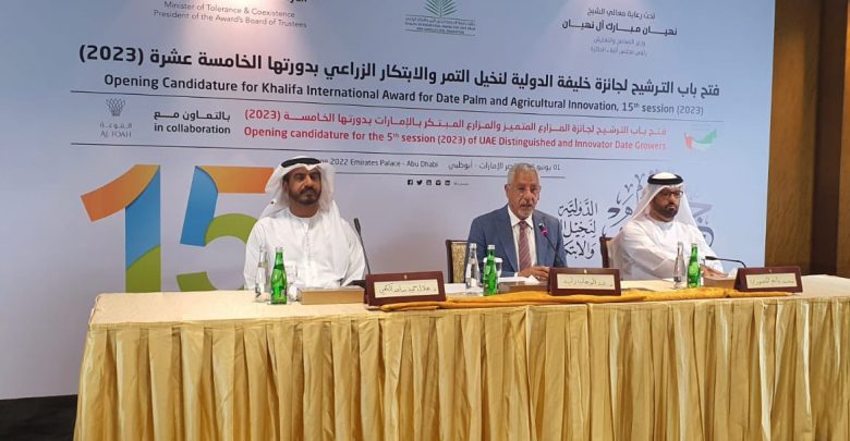 تحت رعاية نهيان مبارك آل نهيان فتح باب الترشيح لجائزة خليفة الدولية لنخيل التمر والابتكار الزراعي بدورتها الخامسة عشرة 2022