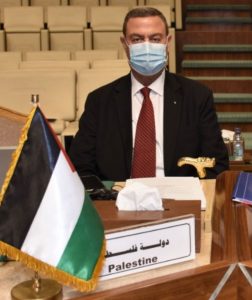 ترأس وفد دولة فلسطين سفير دولة فلسطين بالقاهرة ومندوبها الدائم لدى الجامعة العربية دياب اللوح، ، وضم الوفد السفير المناوب لدى الجامعة العربية مهند العكلوك، ومستشار أول مندوبية فلسطين بالجامعة العربية تامر الطيب .