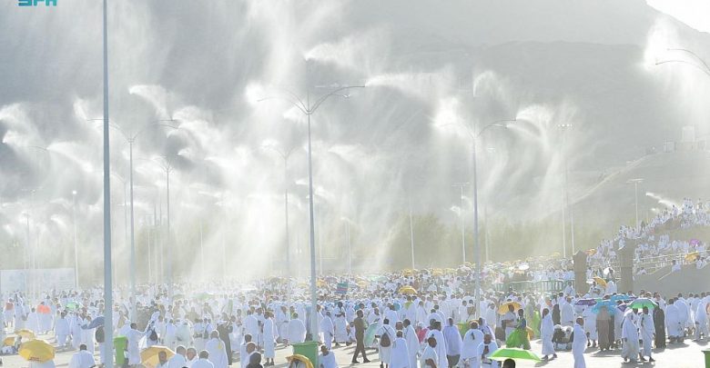 رذاذ الماء يتطاير لتلطيف الأجواء في عرفات