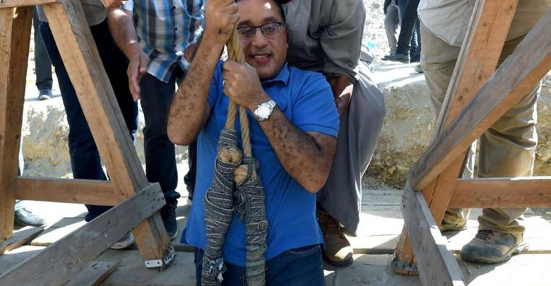 قام رئيس مجلس الوزراء المصري، مصطفي مدبولي، مستخدما حبل بالنزول داخل بئر أثري برفقة وزير الأثار، خالد العناني، لتفقد توابيت عثر عليها.