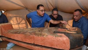 وخلال تفقد مدبولي أعمال استكمال حفائر البعثة الأثرية المصرية العاملة بمنطقة آثار سقارة، تم العثور على عدد ضخم من التوابيت الآدمية الملونة والمغلقة منذ أكثر من 2500 عام، بالإضافة إلى تماثيل خشبية ملونة ومذهبة.