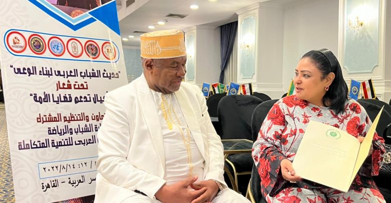 جاء ذلك خلال لقاء الدكتورة مشيرة أبو غالي مؤسس ورئيس مجلس ادارة مجلس الشباب العربي للتنمية المتكاملة والسيد محمد حسين جمل الليل مستشار رئيس جزر القمر المكلف بشؤون العالم العربي ، وذلك على هامش فعاليات الملتقى الاول “حول حديث الشباب العربي لبناء الوعي ” الذي ينظمه المجلس بالتعاون مع وزارة الشباب والرياضة ، حيث سلم المستشار محمد حسين جمل الليل الدكتورة مشيرة أبو غالي رسالة خطية من قبل رئيس جمهورية جزر القمر المتحدة عثمان غزالي تضمنت الاشادة بجهودها البناءة ودور المجلس الرائد في الاهتمام بتوعية الشباب العربي واشراكه في التنمية والنهوض بالمجتمعات العربية .