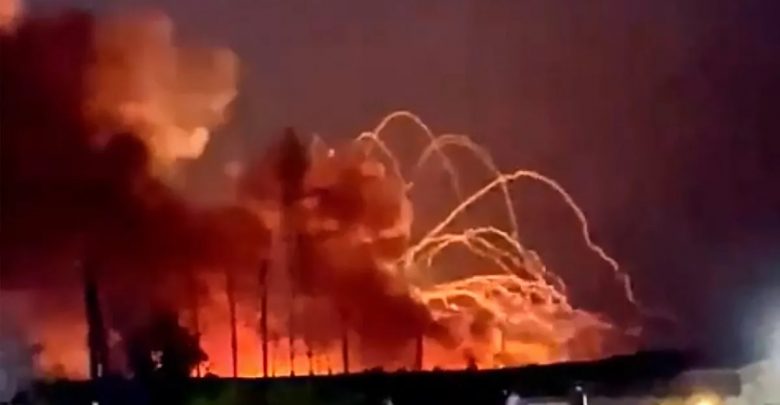 Ammunitions warehouse is burning and detonating in Belgorod region of Russia pic.twitter.com/AVqR956M1X