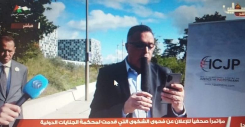 هذا يوم عظيم يشهد حدثًا تاريخيًا، حيث أن نقابة الصحفيين الفلسطينيين هي أول نقابة في العالم، بالتعاون مع الاتحاد الدولي للصحفيين، تتقدم بشكوى إلى محكمة الجنايات الدولية وترفعها إلى المدعي العام للمحكمة الجنائية الدولية السيد أ. كريم احمد خان.