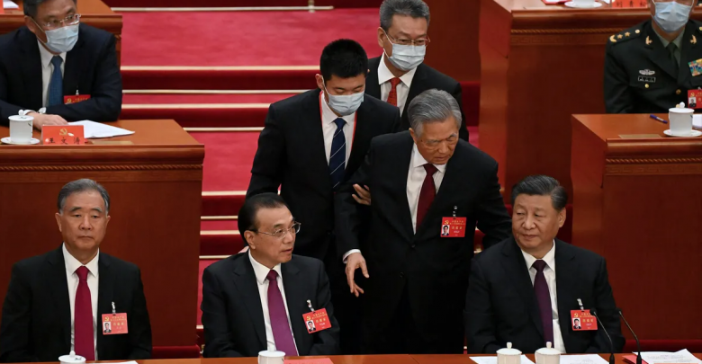 وكان رجلان قد قاما بسحب الرئيس السابق للصين، من مقعدة الذي كان بجوار الرئيس الحالي شي جين بينغ، واقتياده إلى خارج القاعة التي كانت تقام فيها مراسم احتفال الحزب الشيوعي الصيني في الكونغرس الـ20.