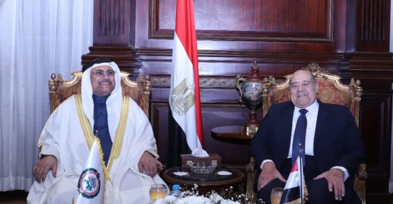 وأكد “العسومي”، خلال اللقاء حرص البرلمان العربي على تعزيز التعاون مع مجلس الشيوخ المصري، انطلاقا من الدور المهم الذي باتت تلعبه الدبلوماسية البرلمانية في دعم القضايا العربية، مثمنا عالياً الجهود الحثيثة للرئيس عبدالفتاح السيسي، ومواقفه المُشرِفة والمشهود لها في تعزيز العمل العربي المشترك والدفاع عن الأمن القومي العربي، فضلاً عن الدعم غير المحدود الذي تقدمه الدولة المصرية بكافة مؤسساتها وأجهزتها، لاحتضانها البرلمان العربي في القاهرة وتيسير عمله، مما يكون له أكبر الأثر في قيامه بالدور المنوط به في دعم العمل العربي المشترك، كما أشاد بدور رئيس مجلس الشيوخ المصري وجهوده الكبيرة في إثراء الحياة السياسية المصرية وبمستوى تعاون المجلس مع البرلمانات والمجالس العربية بما يعزز من الدور العربي المشترك خدمة لقضايا الأمتين العربية والإسلامية .
