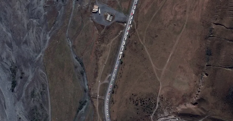 وبالمقارنة بين ديسمبر 2021 وديسمبر 2022، يظهر أن طول طابور الشاحنات المصطفة على الحدود بين جورجيا وروسيا، زاد عن الضعف، حتى أن المعبر الحدودي لم يعد قادرا على استيعاب حركة التدفق الكبيرة.
