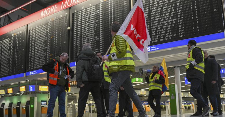 وجاء تنظيم الإضراب لإحداث “تداعيات قوية، خصوصا على الرحلات الداخلية، تتراوح بين التأخير إلى الإلغاء، وحتى التوقف الجزئى لحركة المرور”، بحسب بيان صدر الأربعاء عن نقابة العاملين فى الخدمات الألمانية “فيردى”.