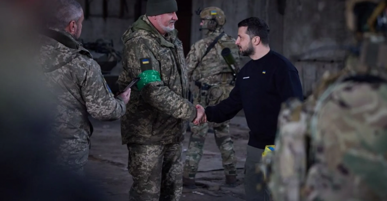 قالت الرئاسة الأوكرانية إن زيلينسكي زار مواقع الجبهة الأمامية للجيش في منطقة باخموت، حيث استمع إلى تقارير بشأن وضع العمليات ومسار “الأعمال العدائية” هناك.