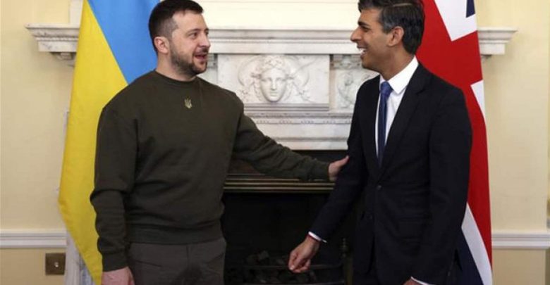 زيلينسكي يصل إلى لندن، التي تعهدت بتسليم “مئات” الصواريخ والطائرات المسيرات الهجومية لكييف.