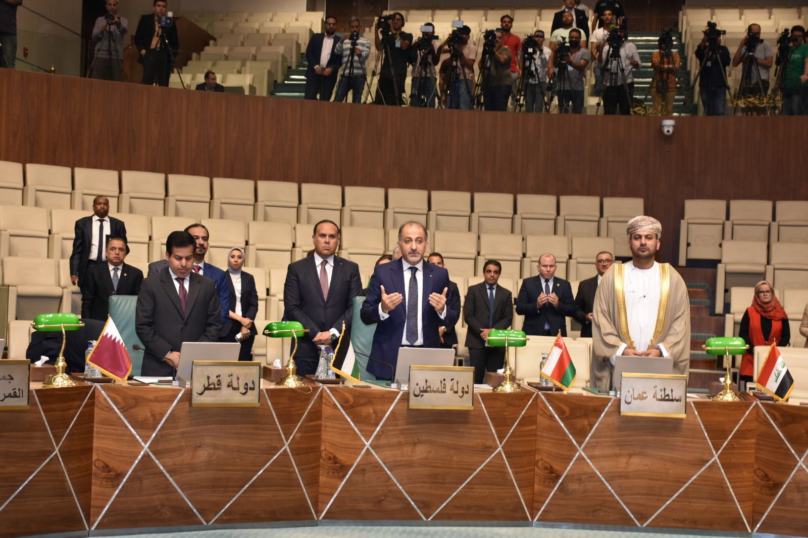 واستهل الاجتماع بالوقوف دقيقة حدادا على ارواح الشهداء الفلسطينيين .
